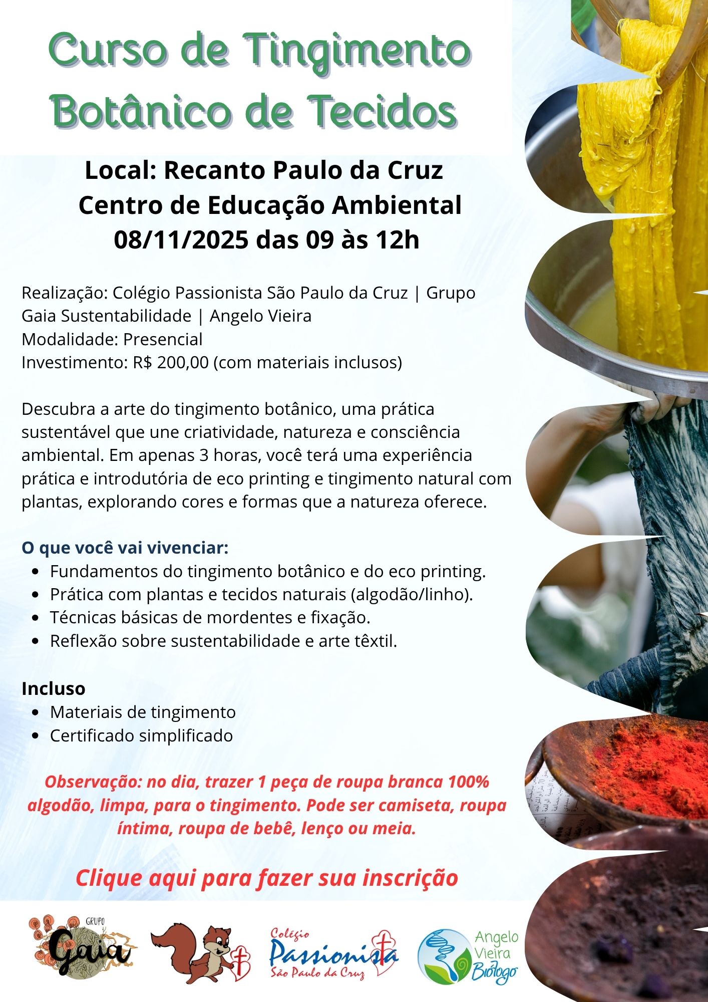 Curso de Tingimento Botânico de Tecidos  - 08/11/2025 São Paulo da Cruz